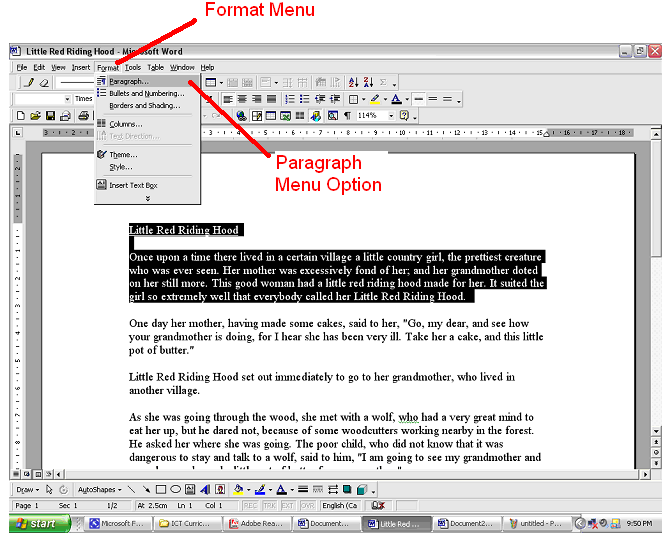 - Place the cursor at the beginning of the paragraph.
