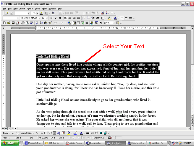 - If you have already typed text it