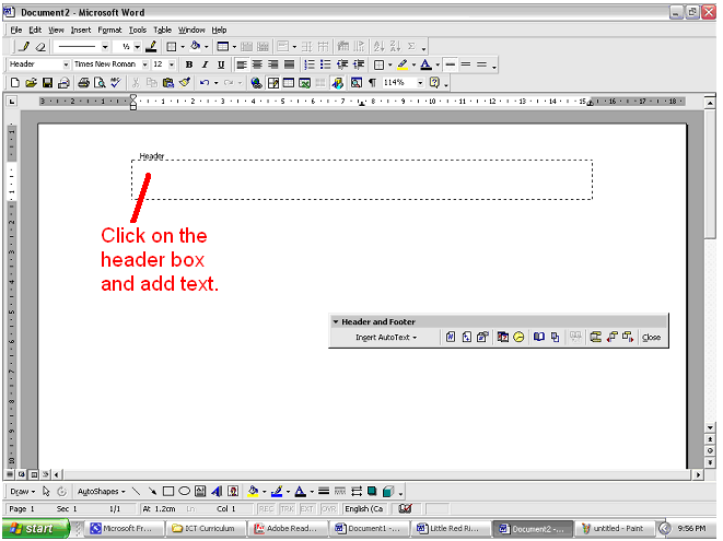 line box which appears at the top of your page and add your header.