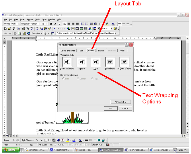 Most times when you are working with a word file you will have text and images on the same page. In these cases you may want the text to wrap around the image . The are several options available to you. To access these options follow these steps: