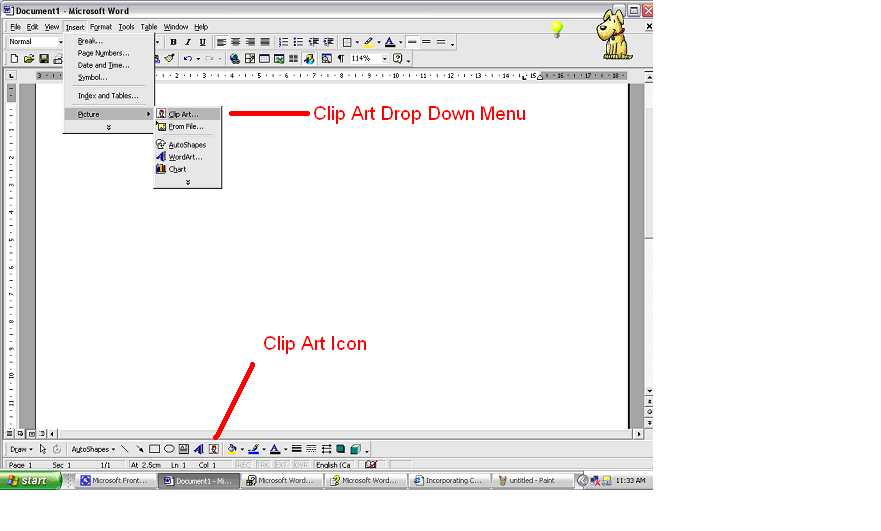 Many times when working with clipart you are going to want to have the drawing toolbar open. To do this: