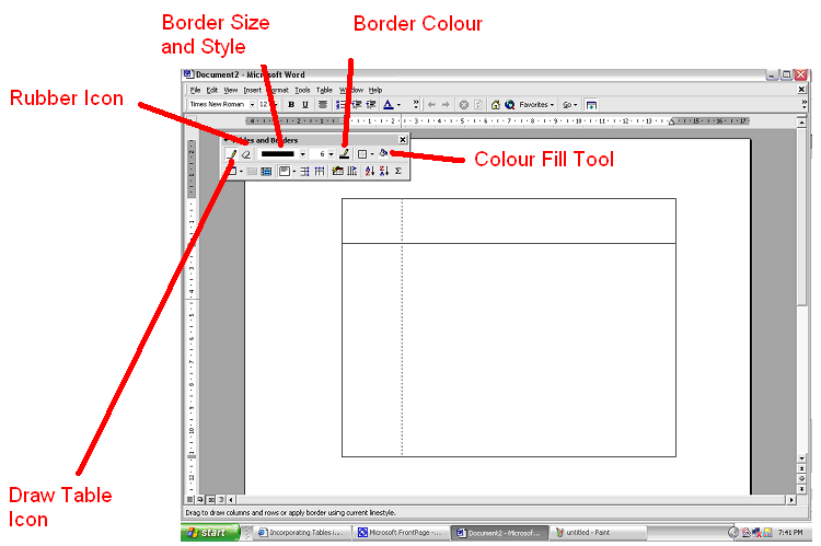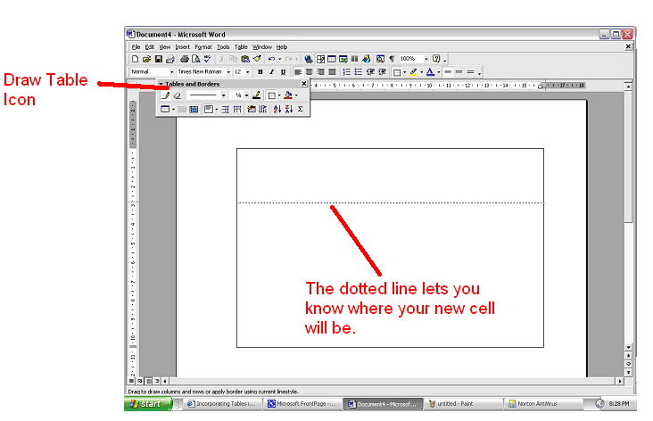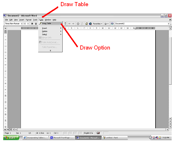 rows, and columns click on the Draw Table