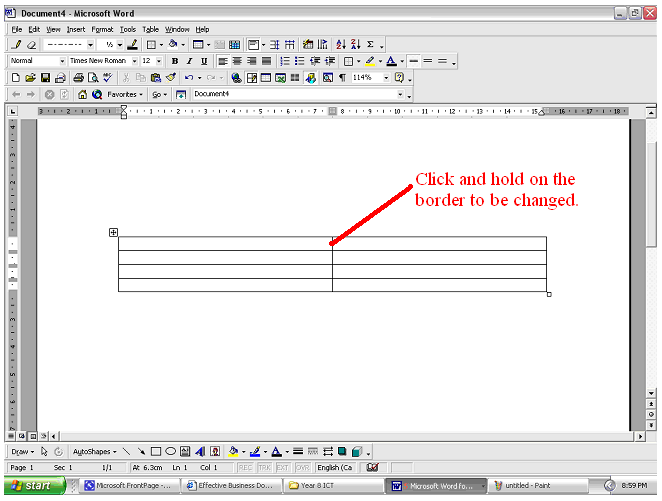 - Position the pointer of your over the border you wish to