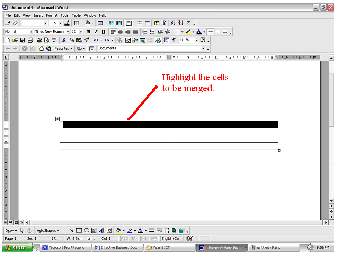 - Highlight all the cells to be merged.