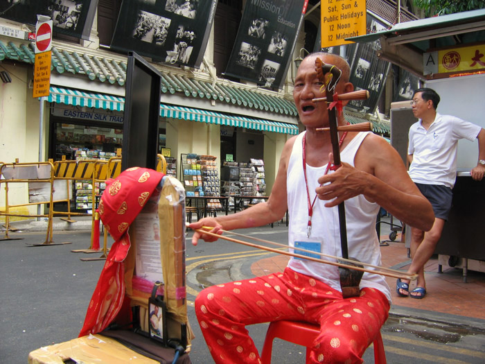 Taken at Chinatown, this uncle was playing his "er-hu" softly when we saw him. But when i asked to take a picture of him, his spirits kinda raised and he started singing and playing loudly. He was really friendly, a nice man.