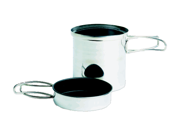 PRIMUS SOLO KIT Only $28.95 Lightweight stainless steel saucepan kit for the lone hiker. Saucepan and frying pan with non-stick surface, both with fold-in handles. Room for a gas canister and TechnoTrail stove. Includes a nylon mesh bag.