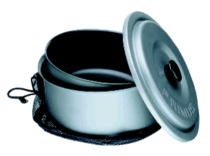 PRIMUS LITECH TREK KETTLE Only $23.95 Ultra light saucepan made of hard anodized aluminum. Foldable handle and room for a gas canister inside. Comes in a practical mesh bag.
