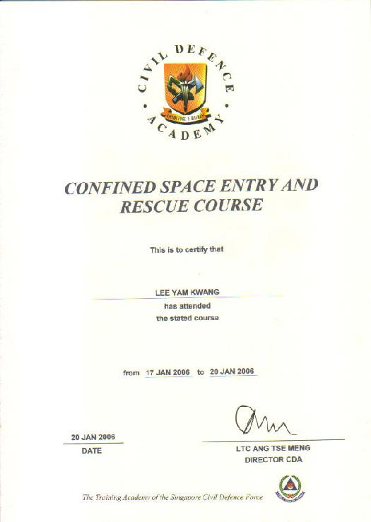 Confined Space Entry and Rescue Certificate Return to Home Page.