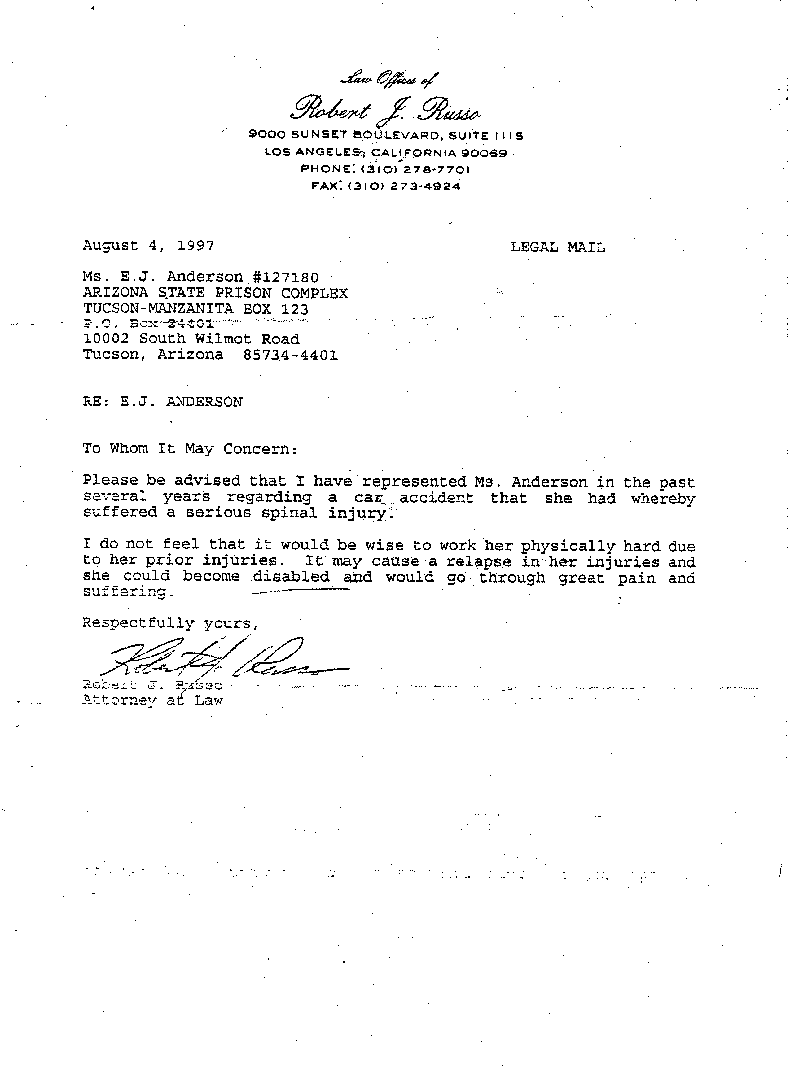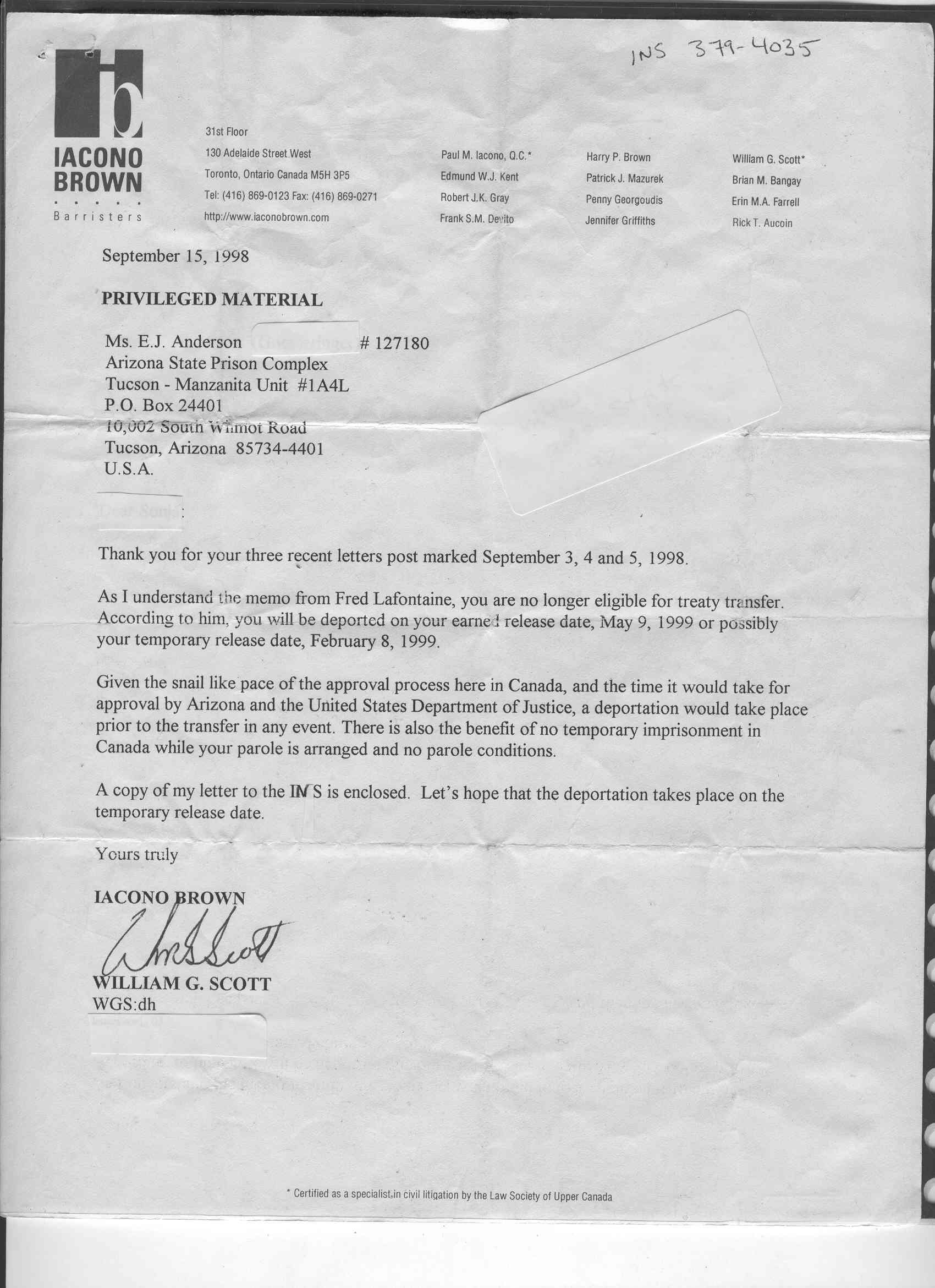 Legal Letter re Deport to (now deceased) COII*