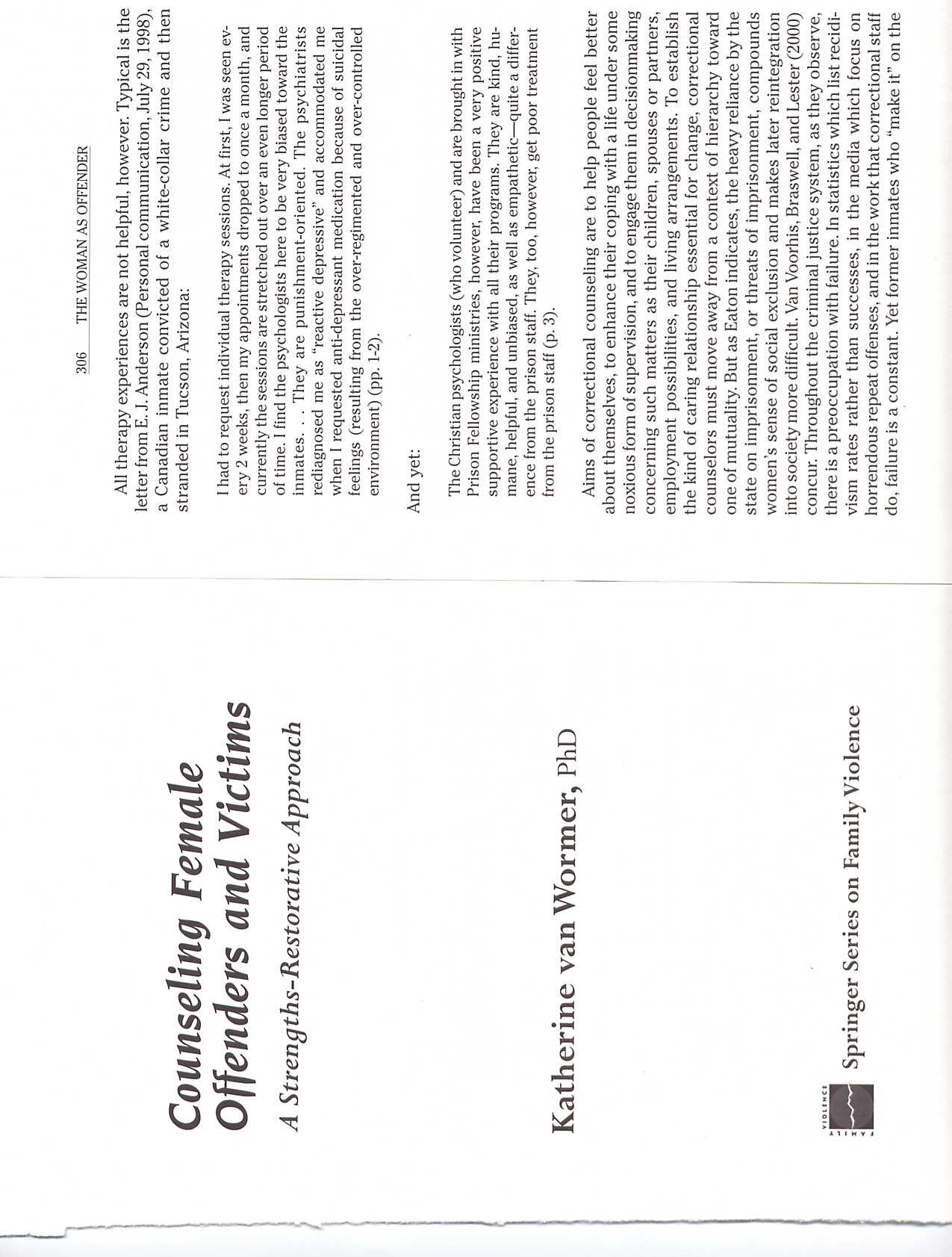 {Counseling Female Offenders and Victims: A Strengths-Restorative Approach ~ by Katherine S. Van Wormer, ~ Univ. of Northern Iowa Dept of Social Work} [page 306 - pseudo/alias used to protect the innocent].