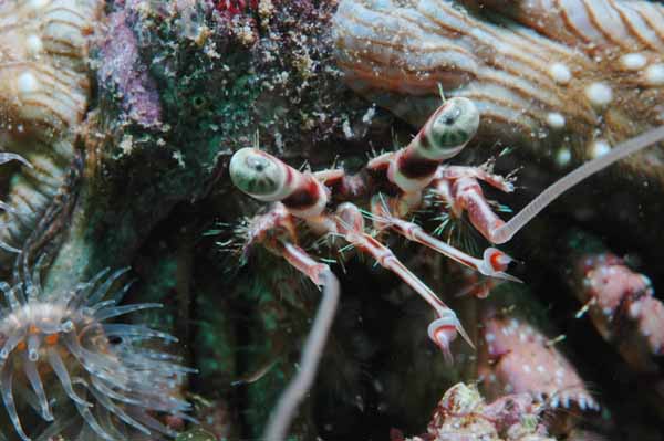 LArge Hermit Crab with well decorated shell covered in anemones for protection but als a good example of a symbiotic relationship (didn't do that underwater naturalist course for nothing you know!)