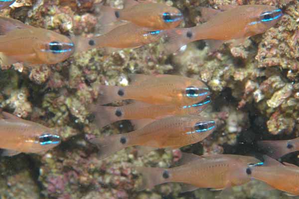 Orangelined or Narrowlined Cardinalfish Archamia fucata, found under the overhangs near the sandy areas at Dibba Rock