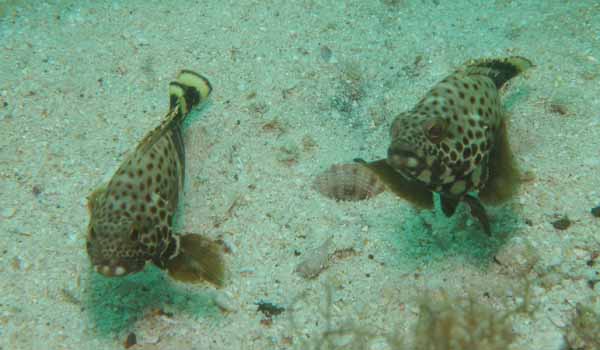 Two of three juvenile Arabian Grouper Epinephelus stoliczkae that appeared to be curious of me and posed frequently for a series of photographs