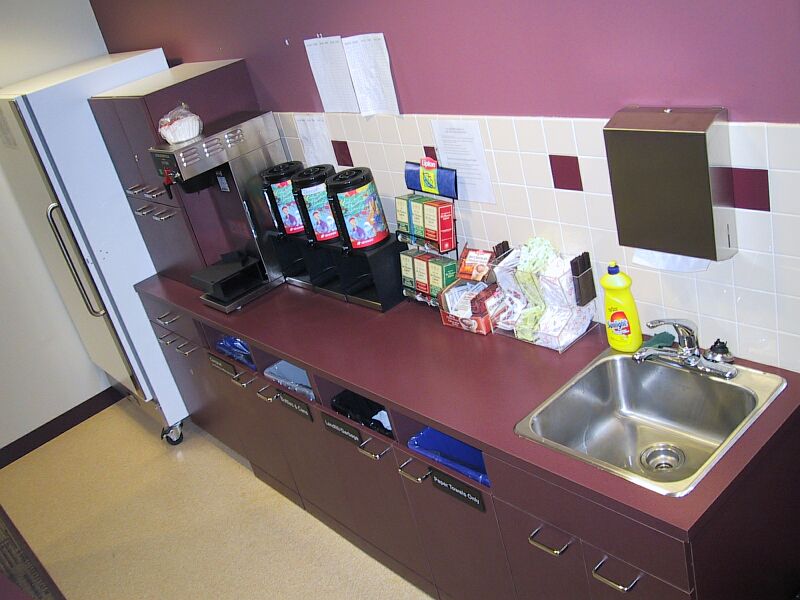 The kitchenette. There are 2 on each floor of each pod. We have free coffe/tea/cocoa there.