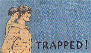 34.02.04When the powerful apes hoisted the log to shake off the two men, Tarzan and Kamur could retain their foothold no longer. They leaped and landed on a ledge. A haven of safety in the sheer wall of the ravine. Tarzan explored the path that led from the ledge, but saw that it melted finally into the vertical wall. With savage apes above and the deep ravine below, they were hopelessly imprisoned and doomed to a terrible death by hunger and thirst. The alert apeman leaped to peer at a curious hole in the rock wall. Suddenly, two sinewy hands darted through the opening and closed around Tarzan's throat. As Tarzan drew his knife to slash the hands that gripped him, a strange door opened in the side of the cliff -- and four fierce men seized him. When the cavern had swallowed Tarzan, his captors ran to lay hold of his companions. The ape-man knew now that he was in the cave of the dread brigands of El Ka-Nur. The brigand chief was quick to pronounce judgment on his captives.