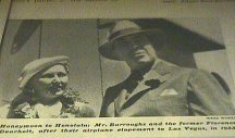Mrs. Edgar Rice Burroughs, wife of the prolific creator of Tarzan, is here again, with son Lee and daughter Caryl Lee and said that Mr. Burroughs is planning to follow them soon, probably on the Monterey next week. They're staying for the summer, taking a house at Kailua, and Mr. Burroughs will knock off another thriller while basking in the Hawaiian sun. The Burroughs live in Tarzana, Cal., which should be proof of the author's fame when he has a postoffice to his name. Such is success, after a hectic career as cavalry man, salesman, goldminer, storekeeper, cowpuncher, policeman, infantry major and finally book-writer. Tarzan's Creator Last week Mrs. Edgar Rice Burroughs and two children arrived in Honolulu for the summer, and Mr. Burroughs arrived yesterday, stating that while here he'll continue writing. "Another book?" he was asked. "Another!" he retorted, "I'll write a series of books in Hawaii -- though not about Hawaii." The creator of Tarzan comes from Tarzana, Cal., his extensive estate, and the family has taken a house at Kalama. Mr. Burroughs will make a special broadcast over KGU tonight at 6:30 o'clock introducing a new series of transcribed Tarzan dramatizations, the first of which will be heard over KGU tomorrow evening. "Tarzan is on the radio now," he said. Asked if his Mars stories had been dramatized for radio, he said they would be soon, adding that they would be guaranteed not to scare the listening public into believing Mars was attacking the Earth, as Orson Welles once unintentionally convinced thousands of listeners. Mr. Burroughs was last here two years ago. He said yesterday his 52 books (not counting scenarios, comic strips, short stories, etc.) have sold 25,000,000 copies and have been translated into 57 languages in the last 20 years. |