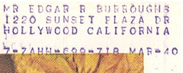 Despite what numerous Burroughs biographers have reported, Lee had fond memories of his relationship with his step-father. He remembered Ed as being a good and kind father if somewhat distant because of his pre-occupation with his writing and business ventures. One fond memory was the time Ed had taken the boy to a baseball game at Wrigley Field only to find that it was sold out. They then drove over to the airport to where the Goodyear Blimp was moored in time to take an hour-long ride over the city. Ed paid another book tribute to Florence in February 1939. The dedication in the latest ERB, Inc. release, Carson of Venus, was "To Florence Gilbert Burroughs." Florence underwent major surgery that summer after which the family moved to luxurious 716 North Rexford Drive (rent $300 per month) to make Florence's recuperation more pleasant. After eight months, however, the cost of maintaining two establishments (he was paying for Emma's expensive home in Bel-Air), high spending, and the loss of income resulting from the war in Europe forced them to consider a move. In November, 64-year-old Ed suffered several more slight angina attacks, possibly brought on by the stress of financial worries. |