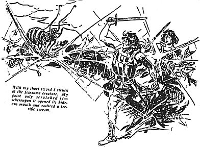 My point only scratched it -- whereupon it opened its hideous mouth and emitted a terrific scream. |