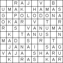 I am well aware that the crossword is not an easy one. That was not something I did on purpose, though. Only some four hundred Barsoomian words are known, and there is a limit to how they can be combined. Therefore, some rather rare names had to be used.