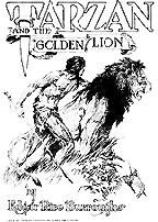 Everyone knows the rugged strength of his dust jacket illustration for Tarzan and the Golden Lion because it is the logo of the Burroughs Bibliophiles. It is probably everyone’s favorite St. John illustration. Yet it is more than a picture; it is a sacred ICON.