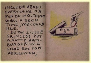 III. The interdiction is violated, and a villain enters the tale(So the little princess put a nutty hamburger in a shoe box for her lunch, vaulted over the garden wall and went into the forbidden forest.)