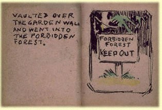 (The little princess was walking in the garden when a bad thought sneaked up behind her and whispered in her ear, "Go into the forbidden forest.")