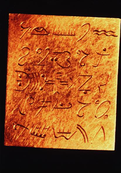 The plates pictured here were found while searching the under ground shaft, which was built around 450 ad. It's contents seem to be protected by a series of "booby traps", as a number of people have mysteriously been killed trying to enter the tunnel. In the early 1960's, Jose Davila, (who was able to discern what the glyphs said), took a couple of BYU archeology students to this location, where they tried lowering someone down the hole. Here is the story. Del Allgood owned a small rock shop in Fillmore UT. He was a talented man and could do the most amazing things with an old twisted up piece of wood or a pile of ordinary rocks. If he wasn't busy creating his works of art he was in the hill's looking for more recourses to build his art with. It was during one of these excursions that he stumbled upon the mysterious symbol site in the hills above Fillmore Utah. Even though he wasn't the first to discover them, he did take an unusual interest in them in trying to figure out their meaning. Del worked at the local gas station to help subsidize his income. He loved talking to the customers about the symbols and the Spanish mines in the mountains. One day a man from Salt Lake City stopped by for a fill up. As usual Del started talking about the symbols and how they almost looked like Egyptian hieroglyphs. In an unusual turn of fate, the customer knew a professional treasure hunter named Jose Davila, who could read Egyptian. Jose is from Mexico but just happened to be in Salt Lake City that week. Del wasted no time in getting a hold of Jose and described the symbols to Jose over the phone. He agreed to pay for a round trip bus ticket and to give him money for meals, if Jose would just come out to Fillmore and take a look at the symbols. Arrangements were made and bus tickets were purchased. When Jose arrived in Fillmore in September of 1964 Del met him at the bus station. They headed for the symbols four miles east of Fillmore in Chalk Creek canyon. They came to rest in front of a small cave. On top of the cave's entrance was an inscription of 25 characters. In Jose's own words he said: "A sober evaluation of these inscriptions led me to the conclusion that I was confronted by the first kind of Nephite Idiogramic writing that had ever been found in petroglyphs in North America." Five days later, Jose had translated a number of the symbols and was very excited about them. He says they talked about sacred records deposited there. And they gave the instructions to retrieve them. The rest of that winter found Jose working on the translation of the symbols and surveying the area. When the snow finally melted, they started marking the area for the place to dig. Jose figured the inscriptions said to draw a square area 100 cubits per side and put intersecting diagonal lines to determine the center where they were suppose to dig. As they were marking one side of this area, they found a hand carved into a rock, but didn't think anything of it and proceeded to the center of the box they had just drawn. During the rest of the summer (1965), they proceeded to dig a 20 foot tunnel and drilled over 600 feet of exploratory holes just to eliminate possible site locations. Jose said it was an expensive summer. They spent over $1000 for drilling and over $1000 for road work, tunneling, dynamite, food and fuel. Jose spent that summer living near the site in his camper. When snow came, it forced them to stop. They had to wait until the following summer to start up again. That summer Jose and his helpers put in an 80 foot shaft 20 foot wide. They felt they were close to breaking into the tunnel where the gold plates lay hidden. However, Jose said greedy eyes were watching their progress all the time and were just waiting for the right moment to jump in and finish the job themselves. At that moment, Devon Stanfield offered the owner of the mining claims, Harold Huntsman, $100,000.00 dollars to step in and stop Jose before he broke into the chamber, so he could retrieve the gold plates. A costly court battle broke out between Huntsmand and Jose, with Jose losing. During the court battle they reached the 80 foot mark and mushroomed the hole out at the bottom of the shaft. Their plan was to drill some exploratory holes 360 degrees around the bottom of the shaft hoping to locate the chamber, which they felt was near. On Noveber 5, Duane White and Kent Neeley were working on the shaft. Jose was in the hospital with a ruptured appendix. Devon Standfield showed up and ordered the men to stop work and to get off the property. The men told Stansfied they were working under Jose's orders and they were not leaving. Stansfield told them he would be back Monday morning with a court order and the sheriff to kick them off the property. Duane and Kent decided they better get in and get the gold plates out before Monday. They drilled three 20 foot holes at the bottom of the shaft. The next day November 6, they loaded the holes with 91 sticks of dynamite. The large boom from the blast echoed across the valley. It was a Sunday, Jose had always preached against working on the sabbath, but they felt the situation warranted it. The blast went off at 4pm. Three air hoses were dropped down the shaft and the compressor was turned on full blast. Kent and Duane headed for town to eat while the fumes from the blast were clearing out. While eating, Kent's parents showed up. Two hours after the blast, they all headed back up the mountian to the shaft. Kent went down first to see if they had broken into the chamber. When they didn't hear from him Duane went down. He started yelling to pull him up and as they did he fell out of the 55 gallon drum he was being lowered down in. Both of them had been over come by the gasses and lack of oxegen from the explosion. Kents mother went to town for help, but the sheriff's possey had no way to retrieve the bodies. It was finally Del Allgood who retrieved them. That night Del call Jose at the hospital and gav