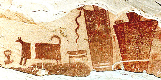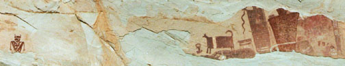 This is a pictograph located at the mouth of South Temple Wash. Temple wash runs west to east right past Temple mountain on eastward where it joins Cottonwood wash then dumps into the San Rafael River 25 miles north of Hanksville. It was found by Herb, while searching for the Temple Mountain graves, just out side of Gobblin Valley.