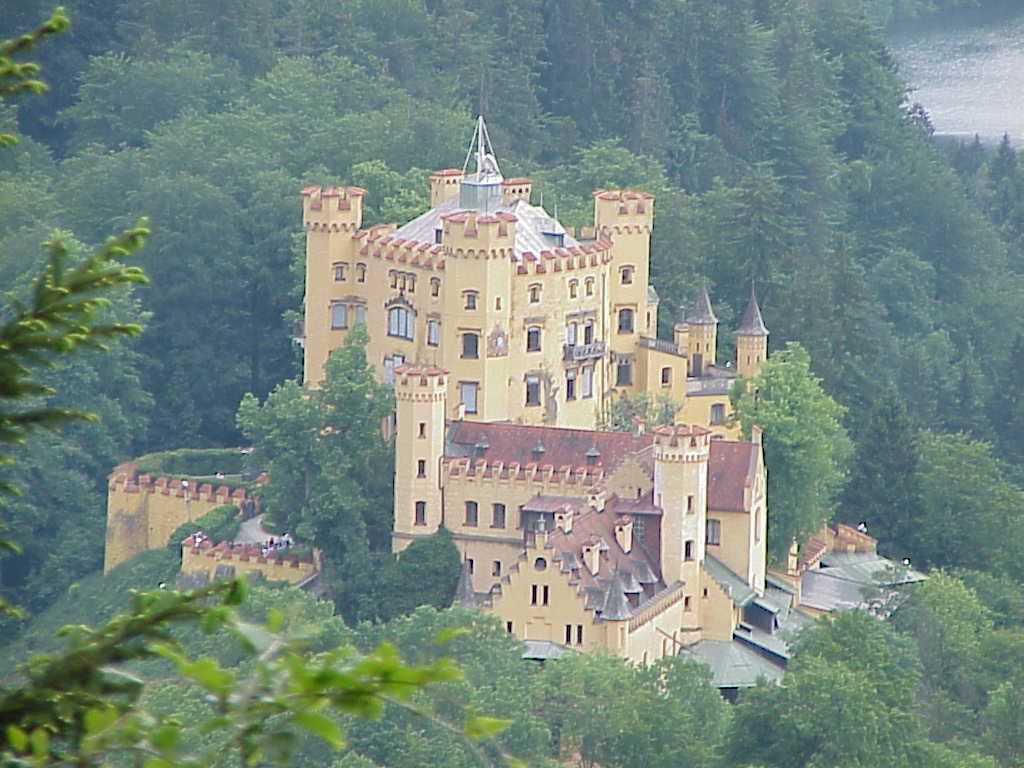 This was our first set of pictures from the ground in Germany. We landed, rested briefly and headed south towards the Alps. These are pictures of the famous Neuschwanstein castle, by King Ludwig II, plus the smaller (orange) childhood home.