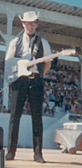 In the summer of '64 we were hired by Imperial Tobacco to perform at the Morris Manitoba Stampede. At this time Barry and I were working mainly as a duo and were hiring pickup musicians to fit the size of the job. We agreed that the perfect singer to take to this gig was our predecessor on the original CKX Co-Op TV shows: Russ Gurr. We were looking forward to working with the flamboyant Russ as we thought he would be a natural for working a rodeo crowd. CKX announcer Lorne Ball agreed to come along as a front man and he showed up in an expensively-tailored western dress suit he had borrowed from Western movie/recording star, Rex Allen who had played Brandon recently. |