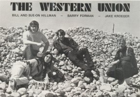 Russ returned the favour a few years later. He was very involved with the fledgling Austin Thresherman's Reunion, and needed a back-up band and feature perfomers for shows in front of the event's new grandstand. Russ remembered how well he, Barry, and I had worked together a few years back and gave us a call. By this time I was married, and my wife, Sue-On was a member of our band: The Western Union. The band at this time also included singer Jake Kroeger, drummer John Skinner, and later Kerry Morris. One of the highlights of our Austin appearances was in 1965 when a NFB film crew filmed our stage performances. Two years later, much of the footage was incorporated into the film presentation featured in the Labyrinth pavilion at Montreal's Expo '67. One of Russ's songs was also used in the official Layrinth record album.