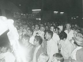 Finally, satisfied that the crowd could wait no longer for this man of mystery, we would plunge into the opening riffs of the Federal Grain Theme which would bring a primed and ready Russ onto the stage. From that moment on the Russ led the audience on a wild ride of highs and lows. For all their hokiness and rough edges, the shows were amazingly popular. The chemistry seemed to be just right for a carnie and fair setting. It developed into a love-hate relationship with the various midways. Invariably, most of the crowd that came out of the evening grandstand shows ended up in our audience -- fascinated by the crazy and sometimes off-the-wall energy of our shows -- while the carnie people groused and fumed as they waited for the late-night "rubes" to arrive so that they could separate them from their money for the various rides, shows and games along the midway. We met a great many great carnies and grandstand show entertainers and revelled in their tales of life on the road and their fascinating stories about show business greats with whom they had worked. We've since regularly seen many of these performers on in Las Vegas and television and we have formed lasting friendships with some of them. Anecdotes from these tours abound and we are looking forward to compiling some of them into a future website feature. All good things have to end, and the end of this unique entertainment experience came about when the Federal Grain Company was taken over by Pool Elevators in the early '70s. To my knowledge, no band has ever done gigs quite like this, and we were all disappointed to learn of the events which brought an end to the tours. Russ soon picked up another contract, however. This time our tour was sponsored by the Elanco chemical company. They put on demonstrations of their product all across the prairies. Our job involved setting up our stage out in the country, close to a Treflan-treated demo field. The company would bus hundreds of farmers in from all the surrounding communities and Russ and the band would perform a show for the gathering crowd. The farmers would then be bussed out to view the various grain fields treated with Treflan. When they returned we would perform another show while they were served a complimentary pork barbecue. Russ was a natural for this job as he could relate to farmers. He and his sons maintain a very large grain operation in the Brandon area and when not performing Russ can usually be found on a tractor or doing farm maintenance -- even today, although he is well into his 80s. We did the Treflan demonstrations for couple summers but when the band was offered a chance to perform as the feature act in American state and county fair grandstands, we were lured back to the lights and excitement of carnie life. Following this, Sue-On and I did three tours workingman clubs in England's North East and became very heavily involved in recording our own albums. Ontario's Family Brown and Whiskey Jack took over the Treflan gigs. Unfortunately, in recent years we have had the pleasure of working with Russ on only a few occasions.
