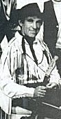 After the parade we would find our reserved spot on the fairgrounds, often close to the grandstand where we would catch the crowd as they exited the afternoon or evening grandstand shows. We then jacked up the four corners of our trailer for stability, and raised the hinged back, sides and top of our stage. The sound system was fed through large speaker horns on each side of the stage and the lighting system consisted of coloured foot and side lights. Usually we would do just one show... just after sunset. Barry would open with a fiddle tune, and then Jake and Bill would follow with a few numbers before we brought on Sue-On. As the crowd grew, we heightened anticipation by telling tall stories about "wild man" Russ. Meanwhile, back in the motorhome dressing room, Russ was preparing his vocal cords by subjecting them to a series of throat sprays and warm-up exercises wound to a fever-pitch by the frantic rhythms emanating from his vintage Martin flat-top guitar. Russ is a leading proponent of the dying art of yodelling, a skill requiring the voice to be in top condition, and he always took his craft seriously.