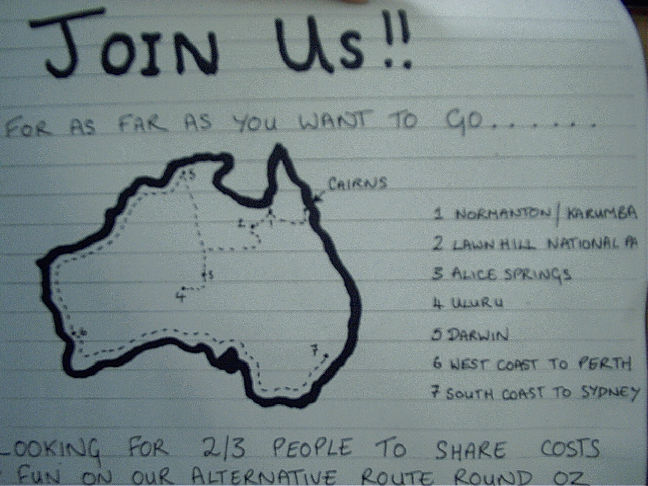 As we got out of the van, she approached Carl, asked for her mooney belt from the safe, and then promptly told him she was getting out fo the van and going to Ayers Rock on the bus. I don't think she expected the smile, the easy agreement and the big wave goodbye as we left her at the hostel gates.