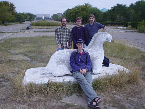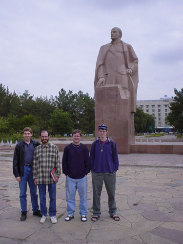 With Lenin The gang with a statue of Lenin in the central park of Karaganda.