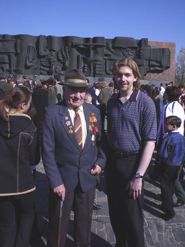 Me with Ivan Petrovich Anatoly and I spoke with this veteran for some time. He is 86 years old, and served as an artilleryman in four campaigns: Finland, Poland, Germany, and the Far East.