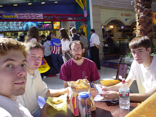 Dave, Chris and Bob (an alum). We stood around for a while waiting to get RR tickets and a room for the night.