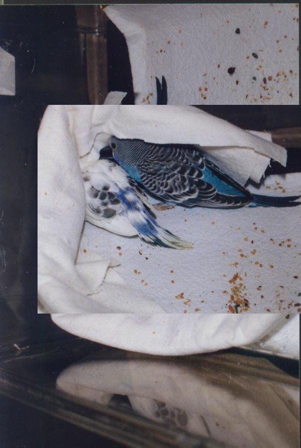 Oops!!!! I managed to merge two images. Sorry about that. Babies 1 and 2 from Snowball and Elmo. We like to bury our heads so you can't see us!!!!