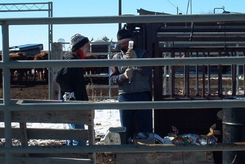 I went out to my aunt's this weekend to be a cowgirl. I helped give vaccinations to allllll the cows. It was mucho fun, and mucho long. Plus I kept getting hit in the back w/ snowballs. (sigh) Oh well. The stuff was really hard to get in the syringe though. You can tell I'm have a tough time with it. |