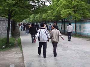 Into Central Jishou On occasion, a lack of supplies unreplenishable from the University's interior dairies required a trip to the city; at times an inconvenient necessity to leave the womb of academic laze, at others an essential break from the repressive sameness of the stubbornly pretty campus. It would consistently take a good quarter-hour to leave the grounds themselves: wandering along the dirty path between the lakeside grass and trees, students would often hail and stop their unusual English teacher and his funny childhood friend for some moments of naive conversation, and then there was always the whooping from the classrooms of the middle school near the front hospital entrance, whose wonder at seeing the same foreign faces every day never ever diminished in any way.