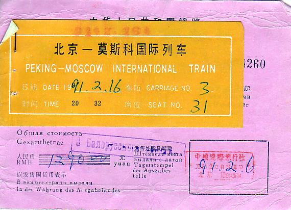 date had finally arrived. $290 CAN Beijing-Warsaw, second class sleeper.