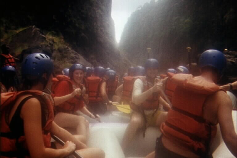 The rafts all bunched together before heading down the Zambezi. Got thrown out twice, the second time when the entire raft flipped end for end in a particularly bad rapid. Very happy the raft did not go over a third time, was just about done the second time they fished me out.