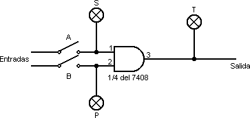 1) Si las patillas 1 y 2 del 7408 quedan al aire (sin conectar) indicar el nivel lógico de la patilla 3.