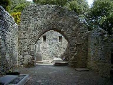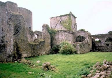 Kells Priory Many people in Ireland either under estimate or are ignorant of the signifiance of Kells as the medevial capital of Kilkenny. Situated on the bank of the King's River the Priory is one of the largest and most magnificent mediaeval monuments in Ireland. Mediaeval towers and long walls enclose some 3 acres of ruins. The Prior's tower, like the other towers, would originally have had three or four floors of timber. The recesses in the stone walls where the huge floor beams were inserted can be seen in this and the other towers. The church dates back to original times, its nave, north transcept and Lady chapel being planned and much of it built during the lifetime of it's founder. The tower in the center of the church, like the Prior's tower and another biult into the west end of the chancel, were not added until centuries later. Kells Priory was founded by Geoffrey FitzRobert in 1193. FitzRobert was brother-in-law to Strongbow and the priory replaced an earlier church, which was dedicated to St. Mary, and served as parish church to nearby Kells village. For the next 150 years the priory was attacked and burned on three occasions, firstly by Lord William de Bermingham in 1252, by the Scots army of Edward Bruce on Palm Sunday 1326, and by a second William de Bermingham in 1327. In 1324, during Lent, the Bishop of Ossory Richard de Ledrede paid a visit to the priory. Following an inquisition into a Kilkenny sect of heretics, Alice Kytler and William Outlaw were ordered to appear before the Bishop to answer charges of witchcraft. Outlaw was supported by Arnold de Paor, Lord of Kells who arrested the Bishop and had him imprisoned in Kilkenny Castle for 17 days. This caused great scandal and on his release the Bishop successfully prosecuted the heretics. Alice Kytler fled to England and remained there, Alice Smith also fled, but her mother Petronella de Meath became Ireland's first heretic to be burned at the stake. Dissolution of Kells Priory finally took place in March 1540 and the church and property were surrendered to James Butler, Ninth Earl of Ormonde. Like many towns in Ireland that are built on rivers, milling played an important part. And so too it did for Kells. At one time there were seven working mills in or around the village. The earliest known one existed around 1170, and was owned by Baron Geoffrey FitzRobert de Marisco.