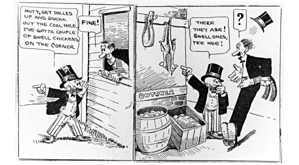 Mutt and Jeff first appeared as Mr. A. Mutt in a November 1907 issue of the San Francisco Chronicle. Bud Fisher's comic strip subsequently was introduced to a wide audience by newly formed newspaper syndicates, and it became the first successful daily comic strip in the United States. To satisfy demand, newspapers published collections of the cartoons, and a 1911 Mutt and Jeff collection was one of the first comic books to be published.