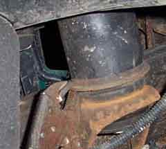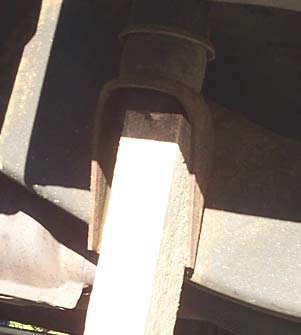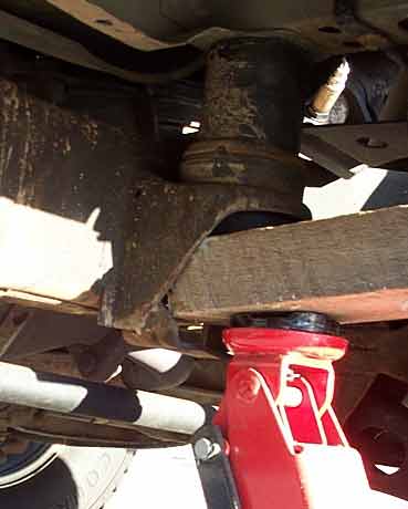 The next problem is (after a few steps) loosening the body bolts. Thanks to the factory every bolt you're moving will be covered in loc-tight. Thats not a bad thing, usually, but it does make this harder. If it available, some people use torches and/or impact wrenches, I didn't have a torch and don't care for my impact wrench (it was free with the compressor, and worth every penny). Turning the bolt head just spun the nut, so what I did was use the jack like so.