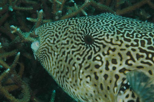 I was not disappointed, once I crossed the staghorn coral stretch and dropped down to 10 meters I encountered a large puffer fish, then I noticed a long pole sticking out from some coral. As I approached I soon realised it was the tail of a ray resting under some coral.