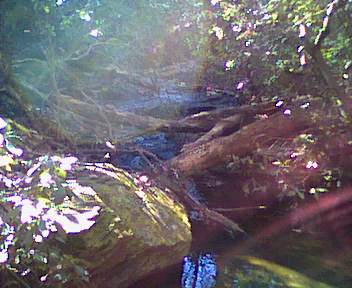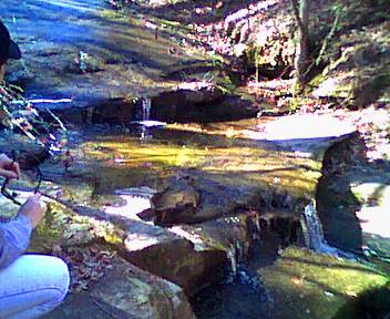 The creek under this trail bridge has lots of pebbles. We found minnows, crayfish, and insects in the water.