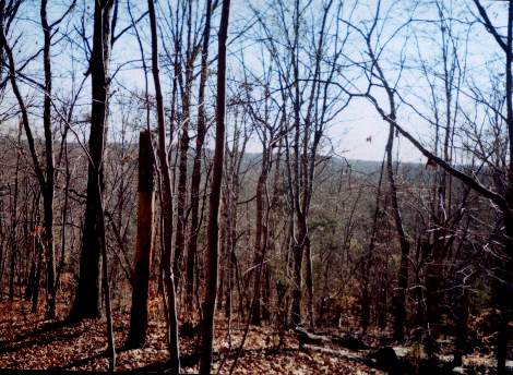 A view from the top of Cox Mountain. It's really a big hill, but the trail across it is steep in some places. In the summer the foliage in the forest blocks this view.