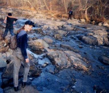 This shows Theresa, with Nathan ahead of her, crossing the river.